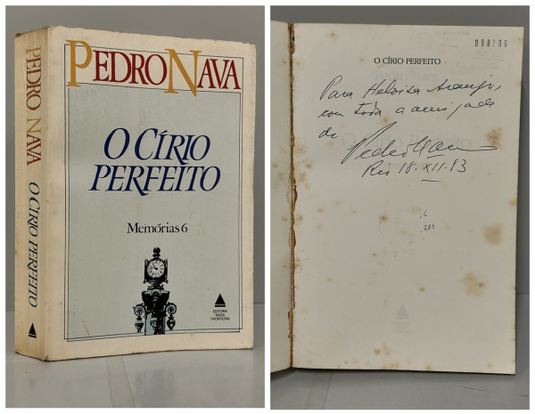 • NAVA, Pedro. - O CÍRIO PERFEITO - Memórias VI. Rio de Janeiro: Editora Nova Fronteira, 1983. PRIMEIRA EDIÇÃO COM DEDICATÓRIA AUTÓGRAFA DO AUTOR: "Para Heloisa Araújo, com toda a amizade de Pedro Nava. Rio 18. XII.13". 586 pp. Brochura em bom estado de conservação. 14 x21 cm.