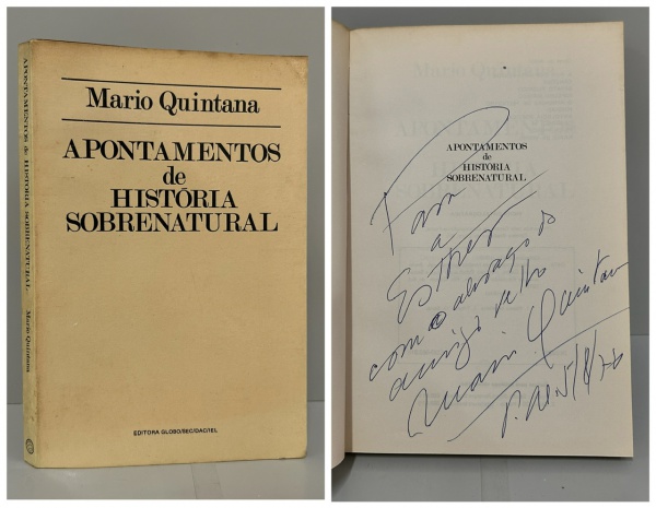 • QUINTANA, Mario. - APONTAMENTO DE HISTÓRIA SOBRENATURAL. Porto Alegre: Editora Globo, 1976. PRIMEIRA EDIÇÃO COM DEDICATÓRIA DO AUTOR: "Para a Esther com o abraço do amigo velho. Mario Quintana. P. Al. 5/8/76".
