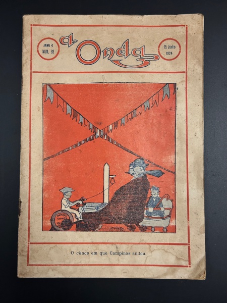 • A ONDA - Revista bimestral de letras, arte e actualidades. Anno 4, N.69. Campinas, 15 de Junho de 1924. Diretor e proprietário: Domingos Andrade. Não paginado. Brochura original, páginas amareladas e com sinais do tempo, exemplar bem preservado. 19 x 27 cm.
