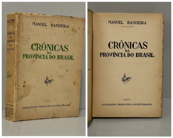 • BANDEIRA, Manoel. - CRÔNICAS DA PROVÍNCIA DO BRASIL. Rio de Janeiro: Civilização Brasileira S/A., 1937. PRIMEIRA EDIÇÃO.  268 pp. Brochura original, páginas amareladas pelo tempo em bom estado de conservação. 12,5 x 18,5 cm.