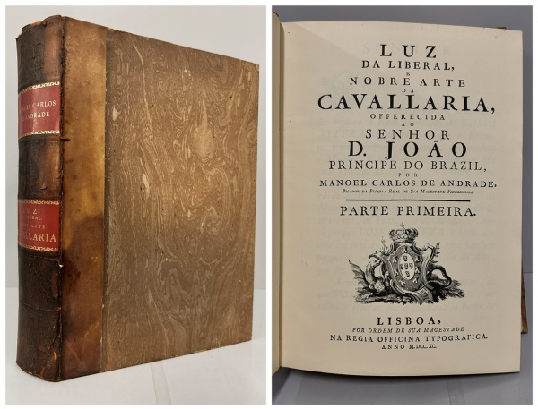 • ANDRADE, Manoel Carlos de. - LUZ DA LIBERAL, E NOBRE ARTE DA CAVALARIA -  Offerecida ao Senhor D. João Principe do Brazil. Lisboa: Na Regia Officina Typografica, 1790. Fac-símile da edição original. 454 pp. Encadernado com danos no lombo, sem capas da brochura, exemplar bem preservado. 23 x 32 cm.