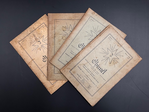 • REVISTA GHIMÉL. São Paulo: Órgão Official da Maçonaria Paulista, 1927/1928. Números 4 e 5 editados em um volume. Diretor: Octavio Ramos. Redactor Secretário: Carlos Reis Filho. 243 pp., distribuídos entre os cinco números da coleção. Brochuras originais, páginas amareladas pelo tempo em bom estado de conservação. 16 x 23 cm.
