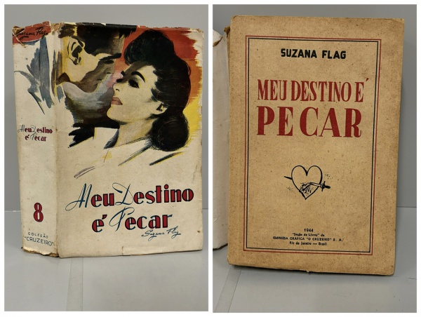 • FLAG, Suzana ( Pseudônimo  de Nelson Rodrigues). - MEU DESTINO É PECAR. Rio de Janeiro: Empresa Gráfica "O Cruzeiro" S.A., 1944. PRIMEIRA EDIÇÃO. Capa de E. Bianco. 467 pp. + Índice. Brochura com sobrecapa original, miolo amarelado pelo tempo em bom estado de conservação. 14,5 x 21,5 cm.