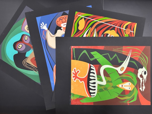 • AYRES, Lula Cardoso. - CINCO SERIGRAFIAS ASSINADAS E NUMERADAS PELO ARTISTA. 102/220. Editadas no Recife pela Guariba Editoria de Arte Ltda., terminando-se a impressão em 5 de julho de 1975. Os cinco guaches originais de Lula Cardoso Ayres foram reproduzidos em serigrafia, sobre papel Fabriano Murillo, por João Ferreira de Lima. As gravuras originalmente integram um álbum editado à época - Aqui as gravuras avulsas. Assinaladas a lápis, alguns sinais do tempo em bom estado de conservação. 45 x 58 cm.