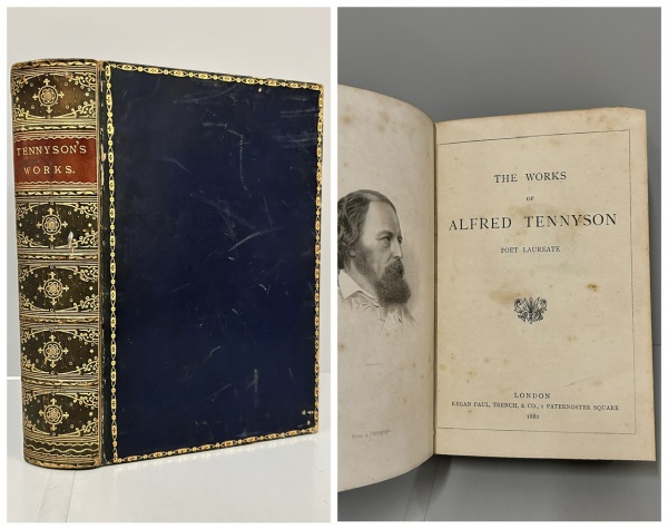 • THE WORKS OF ALFRED TENNYSON. POET LAUREAT. London: Kegan Paul, Trench, & Co., 1882. 738 pp. Encadernação antiga em pleno couro azul e douração. Páginas íntegras com os três cortes marmorizados. Muito bom exemplar. 12 x 19 cm.