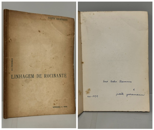 • GROSSMANN, Judith. - LINHAGEM DE ROCINANTE: 35 poemas. Rio de Janeiro: Livraria São José, 1959. PRIMEIRA EDIÇÃO COM DEDICATÓRIA DO AUTOR PARA O POETA Foed Castro Chamma: " Para Castro Chamma de Judith Grossmann. Rio - 1959". 69 pp. Brochura com capa amarelada pelo tempo e páginas em bom estado de conservação. 16 x 23 cm.