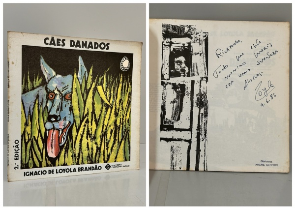 • BRANDÃO, Ignacio de Loyola. - CÃES DANADOS.  Belo Horizonte: Editora Comunicação, 1977. DEDICATÓRIA AUTÓGRAFA DO AUTOR. Segunda edição. 26 pp. Brochura em bom estado de conservação apesar das páginas amareladas pelo tempo. 20 x 20 cm.